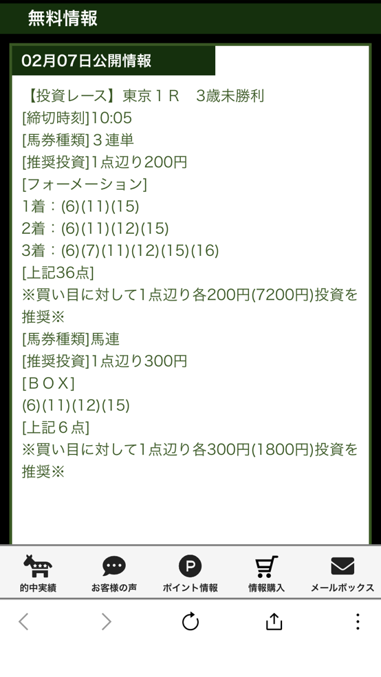 初めての無料予想利用だったので、初回は検証しようと思って見て確認するだけにしようと思っていたのですが馬券買っておけばよかったと後悔… 今週は絶対に無料予想の馬券買います!!