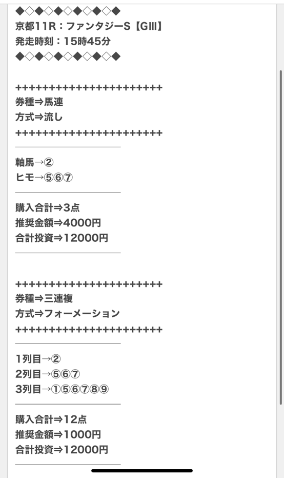 穴馬チャンネルさん無料情報でも出し惜しみしない穴馬情報ありがとうございます。 2着に入った10番人気お見事でした、3連複的中ありがとうございます。 配当も十分満足いく6万8700円ありがとうございました。 穴馬が馬券入ると感情では表せられない喜びがありました!