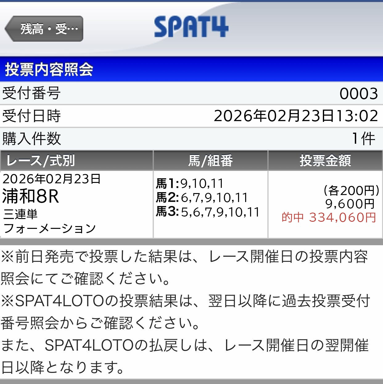 土日このサイトで稼がせてもらったから3連複の買い目にプラスして3連単も1点400円で購入してました。