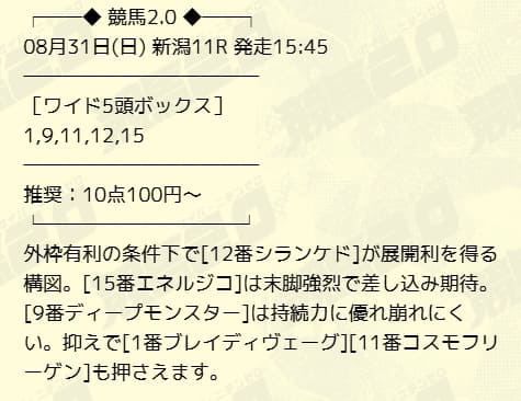 無料予想2週連続的中で紫苑ステークス取れました\(^o^)/
