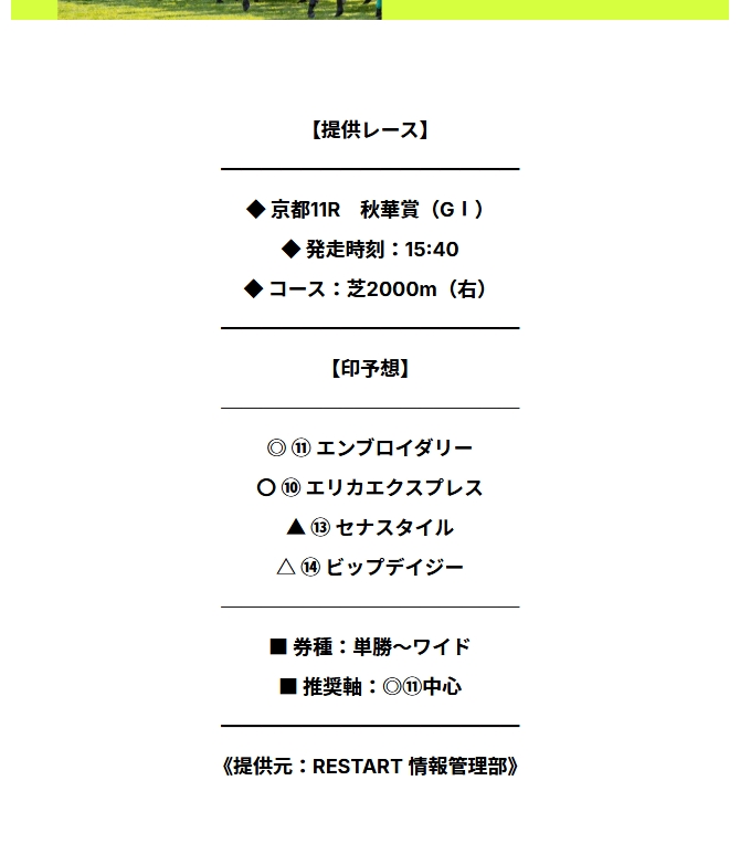 秋華賞も無料予想当たって1日で約40万になりましたわ!