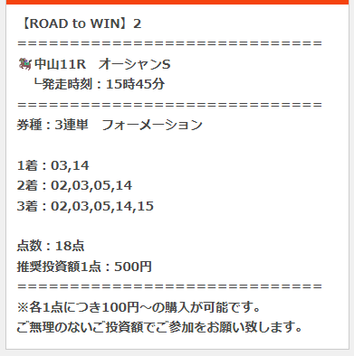 開幕週の小倉メインで万馬券的中貰えました! 初回から重賞的中で相性抜群の予想サイトです。 この日も33,570円、335.7倍的中で1点500円で167,850円的中 コンスタントに的中率が高い予想サイトという印象です。